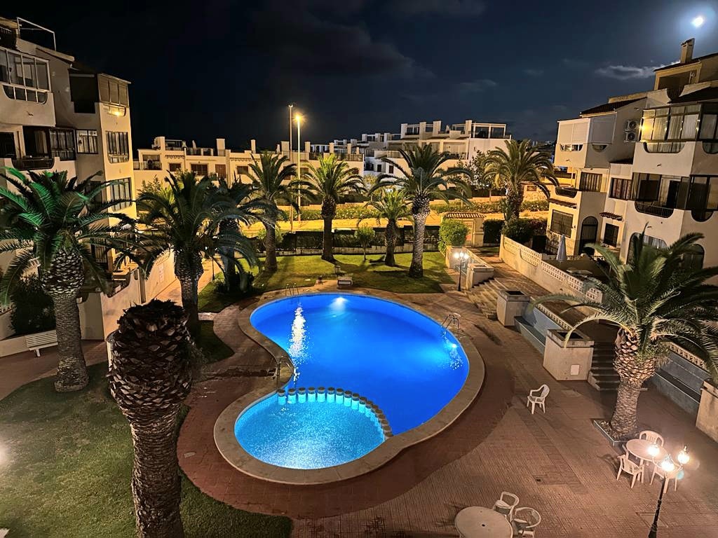 A lovely flat, ready to enter, in a calm condominium with pool and only 5 minutes away from the beach. Nearby you will find all services you might need. Ideal for families with children since it is equipped with cradle, high chair and playground.