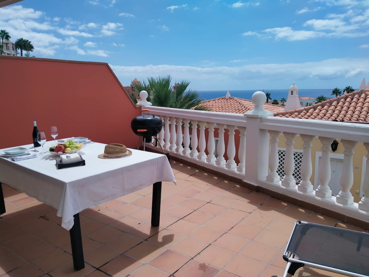Welcome to our newly renovated and cozy apartment with a large terrace and great sea views. Situated in a quiet urbanization in the most exclusive area of southern Tenerife and just a short walk away from Playa del Duque.The urbanization has a heated pool and is close to most of the golf courses on the island.The apartment has 2 bedrooms and 2 bathrooms (one en-suite). It has Wi-Fi, international TV channels. Shopping centres, restaurants,etc are nearby, with everything you need to feel at home