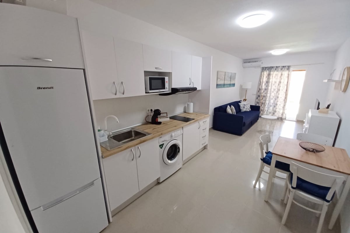 Moderno apartamento con balcón y extraordinarias vistas al mar, muy bien situado, a menos de 3 minutos caminando de la playa. Reformado, con internet gratis, aire acondicionado, tv con canales internacionales, tranquilo, acogedor y luminoso, con una doble altura e idílica buhardilla.