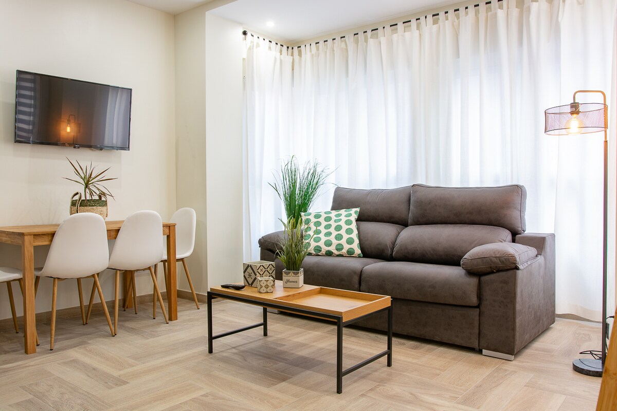 Welcome to 'El Barrio'. Located on Calle Cisneros, in the old town of Alicante, this modern 45m2 apartment is located in a building completely renovated in 2020. It has 2 double bedrooms, exterior balcony, living room with double sofa bed, fully equipped kitchen and bathroom with shower. It has air conditioning, heating and high speed internet connection. There is a public parking located a few meters from the apartment.
