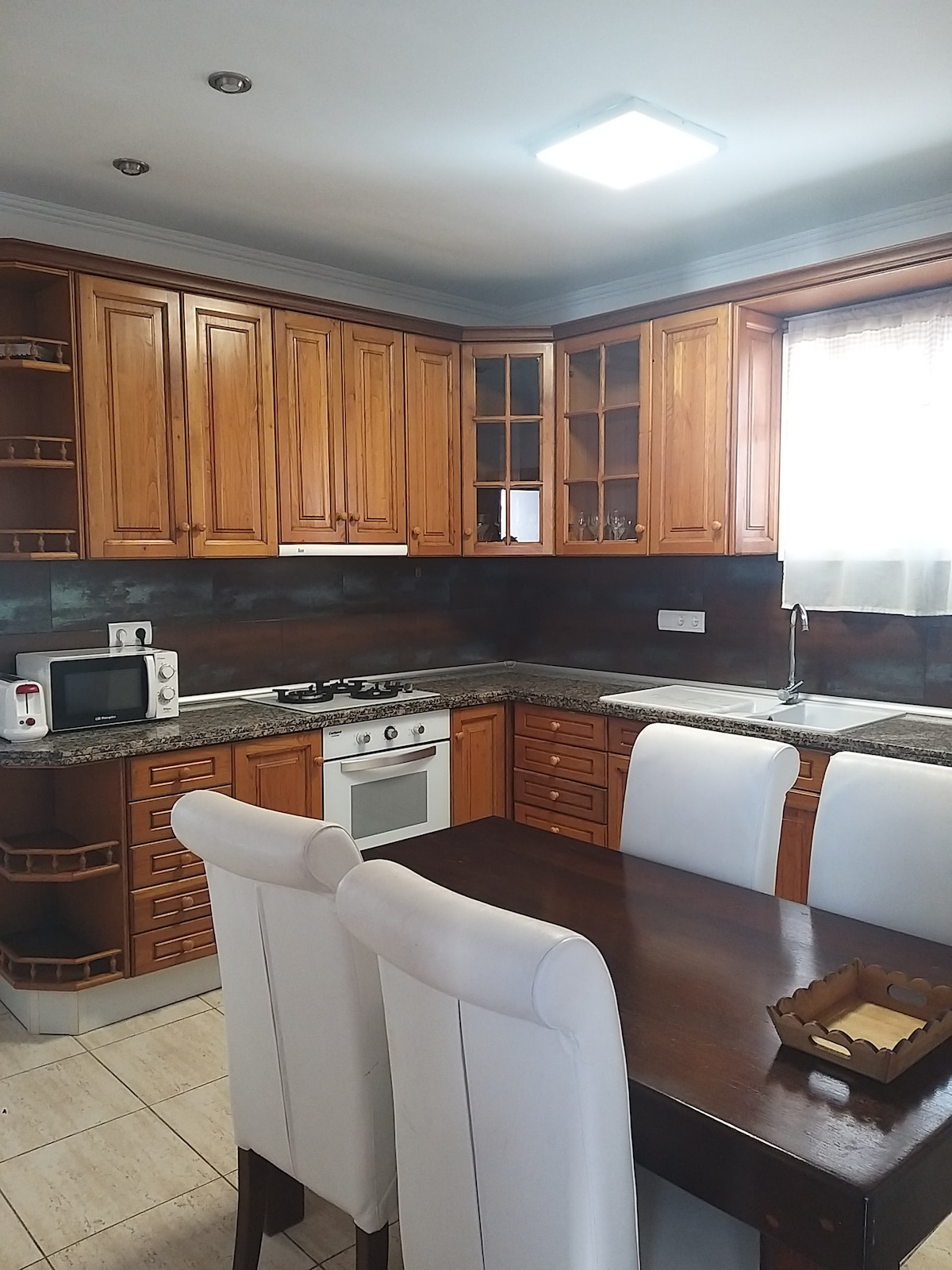 Amplio apartamento de tres dormitorios dobles, uno con cama de matrimonio y dos con dos camas individuales, cocina independiente con lavadero, baño y aseo, amplio comedor. Ubicado en el centro de Santa Eulalia del Río, con todas las facilidades