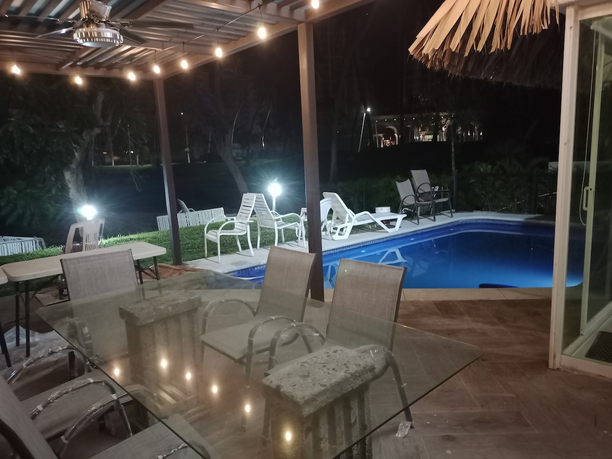 Cómoda y Acogedora casa para 8 personas, con amplia alberca en el fraccionamiento a sólo unos pasos de la casa. Cuanta con cocina totalmente equipada, así como sillas y sombrilla para uso en la playa. A 5 minutos del centro comercial la Isla, Mundo Imperial y Chedraui Selecto. Localizada en la bella área residencial de Acapulco Diamante, ideal para familias. Contando con seguridad las 24 horas y excelentes instalaciones. Dentro del fraccionamiento se ofrecen servicios como Spa, Belleza.