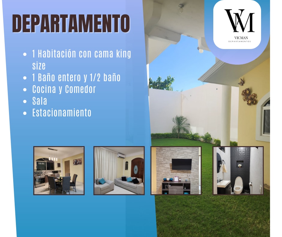 ¡Bienvenidos! Es un espacio pensado en tu confort, totalmente privado de uso completo para los huéspedes. Aire acondicionado en ambas recamaras. Dormitorio principal con 1 cama King size, en el segundo 1 litera con 2 camas matrimoniales y una individual. Los dormitorios tienen cortina black out para regular a tu gusto la iluminación. Estás a solo 650 m de la playa. Contamos con wiffi 300 megas, Smart TV Roku, plancha, toallas, estacionamiento al interior para un auto.