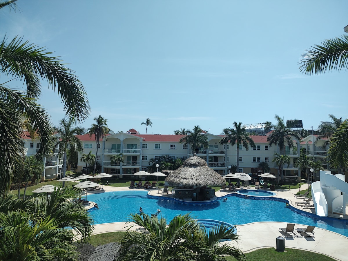 Beautiful apartment for 8 people in Acapulco Diamante. Fully furnished and equipped. With a private terrace; 2 parking spaces; Pools with umbrellas and lounge chairs; Direct access to Beach Club; Paddle, volleyball, soccer, and basketball courts; Equipped gym. Solidly built and 100% safe apartment (no hurricane damage). Steps away from the 7.17 event hall and minutes from La Isla shopping center, restaurants, and bars. The complex has 24/7 private security.