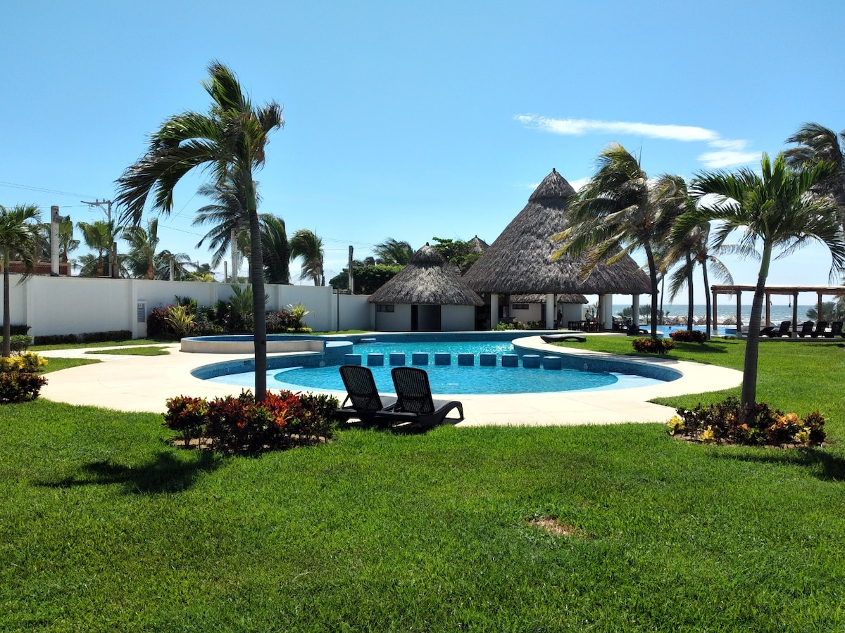 Espectacular departamento de lujo en Vidamar Residencial en planta baja, club de playa incluido (entrada hasta para 6 personas), todos los servicios, con fresh pool exclusiva, alberca con jacuzzi, casa club con servicio de bebidas, super ubicado a menos de 5 minutos del centro comercial "la isla" y de Chedrahui selecto.