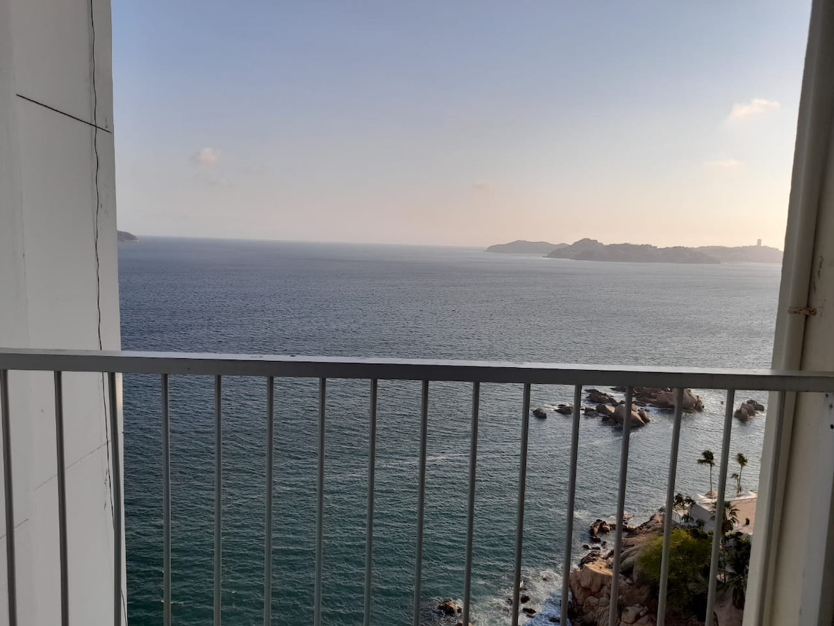 Departamento 100% en funciones, albercas y restaurante también operando, condominio sigue en rehabilitación después de Otis, areas como Elevadores y Lobbie no han concluido remodelación: Disfruta de las hermosas vistas e increíble clima que ofrece la costa del Pacífico, despierta cada mañana con la vista desde el piso 14, en un departamento cómodo y agradable, para después disfrutar las albercas recién renovadas, las hermosas playas, y todo lo que tiene Acapulco que ofrecer, a 4.5 horas de CDMX.