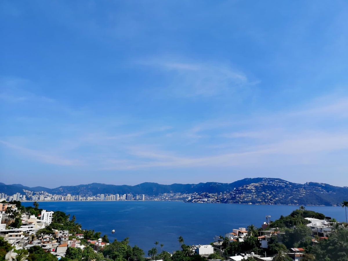 Un lugar con todo lo necesario para que pases unos días sensacionales, a 7 minutos a pie de la cálida playa de Puerto Marqués donde encontraras restaurantes y comercios locales. Ideal para vacaciones con amigos o familia ya que es un espacio amplio y adaptable. Disfruta de una puesta de sol en la terraza, en donde encontraras la alberca privada, con palapa, cocineta y baños de uso común. El espacio es ideal para 4 huéspedes por el número de camas, con posibilidad de 5 en sofá cama.