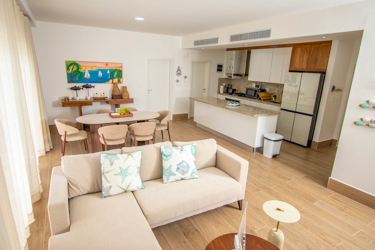Brand-new apartment offering you exclusive access to a private rooftop paradise with panoramic views of the Puerto Plata hills from our Picuzzy. Dive into relaxation in the pristine pool, a hidden gem for our guests, and the sun-kissed Playa Dorada beach is 5 minutes away. Inside, you'll discover three spacious bedrooms, each equipped with refreshing air conditioning to ensure your comfort. The expansive living room is your cozy haven for memorable movie nights and quality time with loved ones.