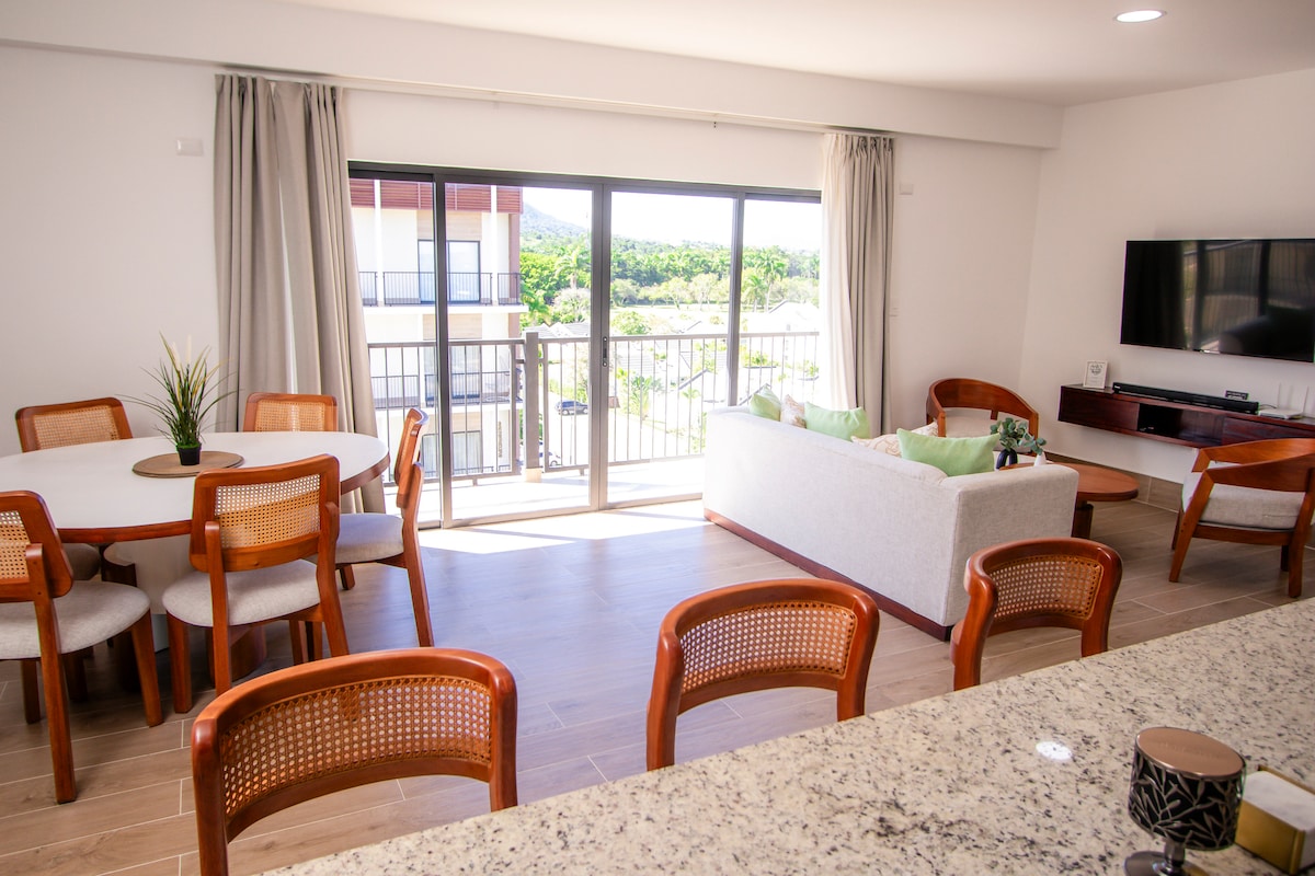 Zafiro is a bright, cozy coastal 2-bedroom apartment on the second floor in the exclusive, gated community of Green One, Playa Dorada, offering 24-hour security and a peaceful atmosphere. Just minutes from the beach, it features stylish décor, a comfortable living area, and a private balcony to relax and unwind. Fully equipped with high-speed Wi-Fi, air conditioning in all rooms, each room features smart TV, a modern kitchen, ideal for guests seeking comfort, style, and peace.