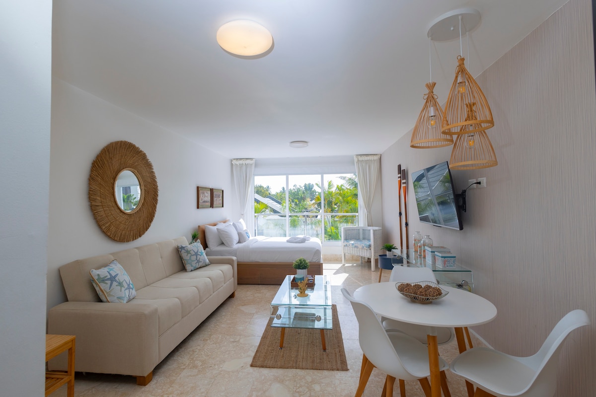 Enjoy a relaxing stay at this beachfront king bedroom in Emotions Playa Dorada. Just a 1-minute walk to the beach, this quiet and cozy spot offers Wi-Fi, TV, and access to all hotel amenities including a large pool. Surrounded by restaurant options both by the beach and within the hotel, it's perfect for couples or solo travelers looking to unwind in comfort. Ideal location for rest, sun, and easy access to everything you need for a perfect getaway. at this peaceful and centrally-located place.