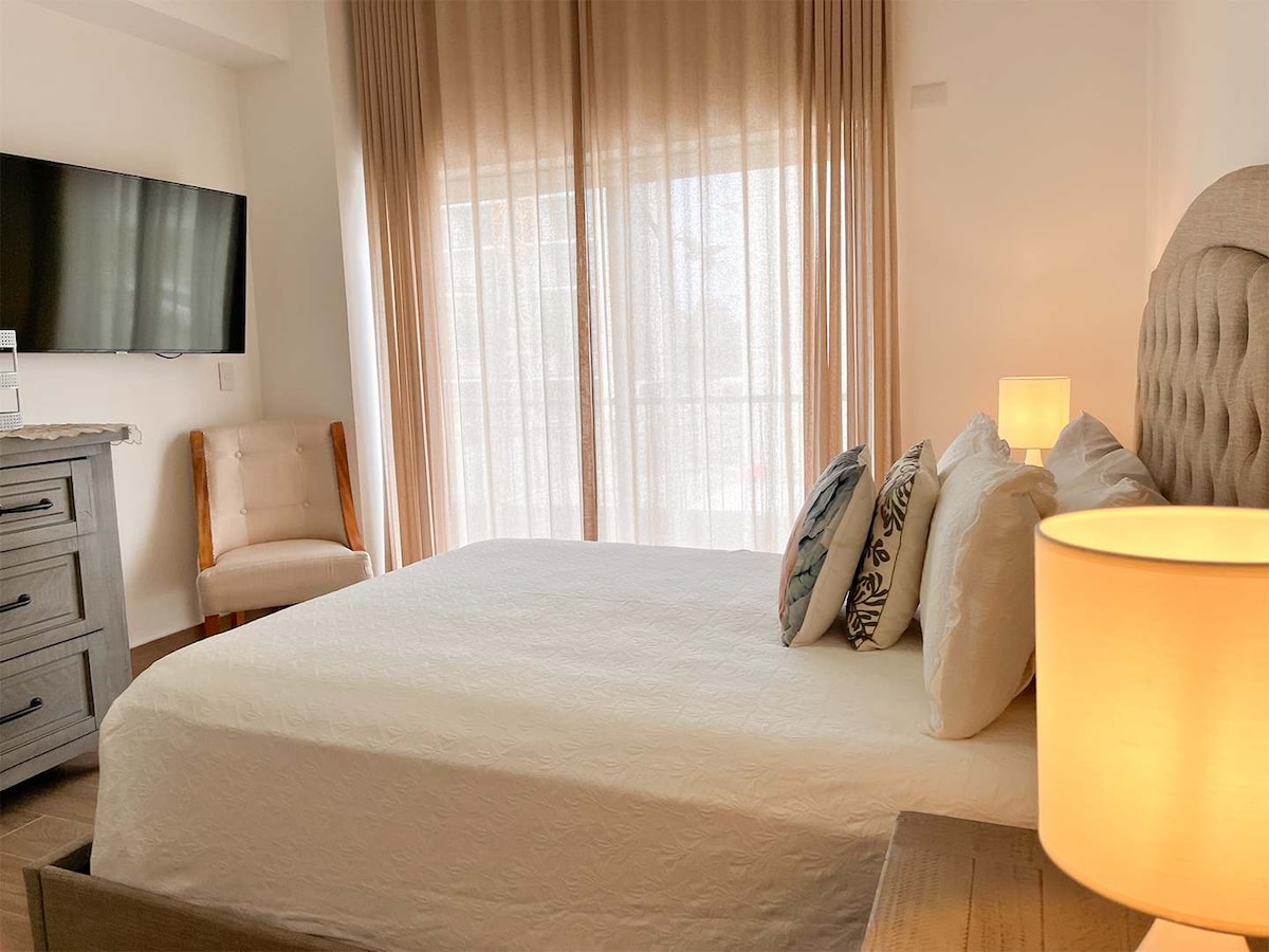 Relax in this quiet and elegant space. come and enjoy a unique and cozy getaway, live an unforgettable experience with this exceptional view of the infinity pool in the Fortunity Beach Tower at Riviera Azul complex in Playa Dorada, where you will also find, gym, restaurant and if you love the sport of Golf this is your great opportunity to enjoy one of the main courses of the country. What are you waiting for? Come and visit us.