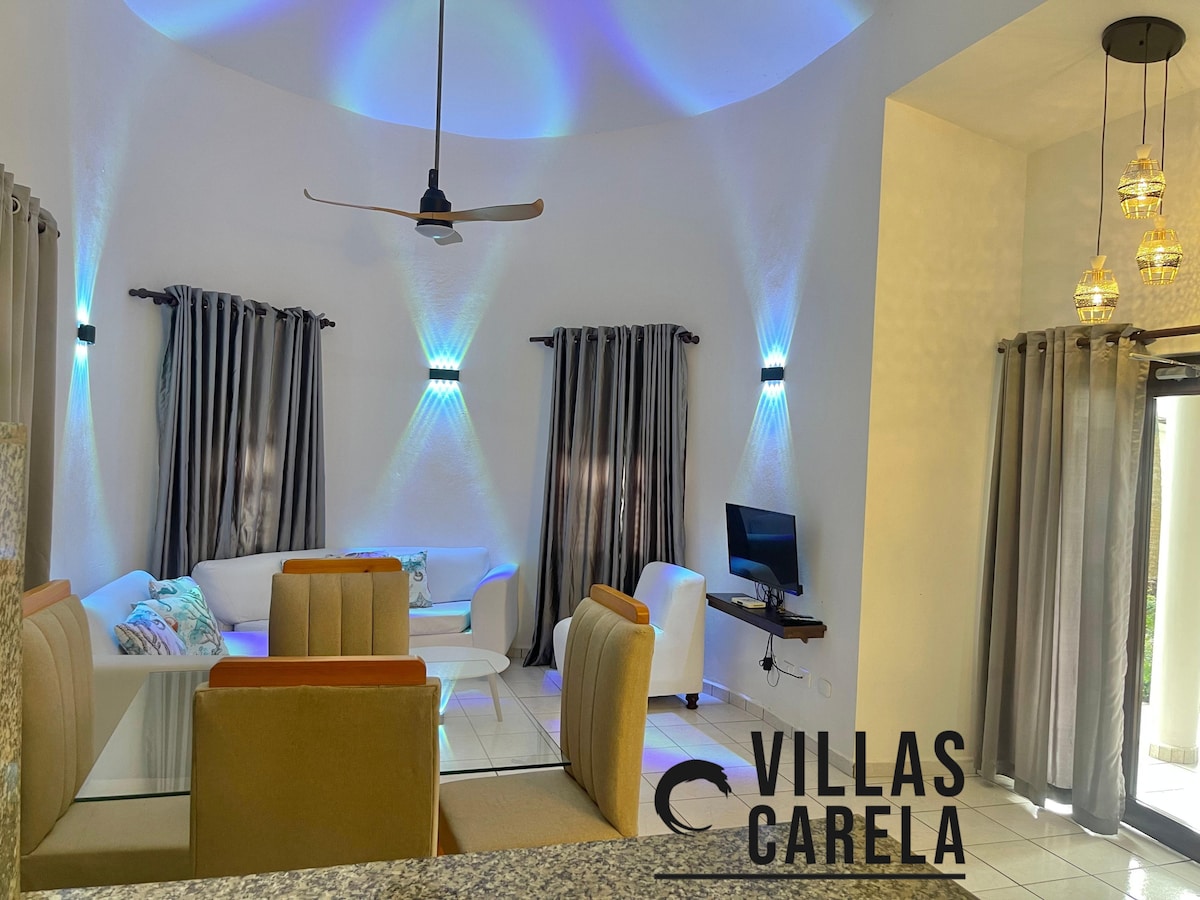 Estamos ubicados en un residencial cerrado con seguridad 24 hora, a 5 minutos de la playa mas hermosa y visitada de Sosua, Playa Los Charamicos. Nuestro alojamiento esta preparado especialmente para nuestros huéspedes, con una hermosa vista al mar, una hermosa piscinal. Tenemos capacidad hasta 10 personas, pero a partir del huésped 6 se paga un extra. La piscina y las áreas comunes son hasta las 10 de la noche