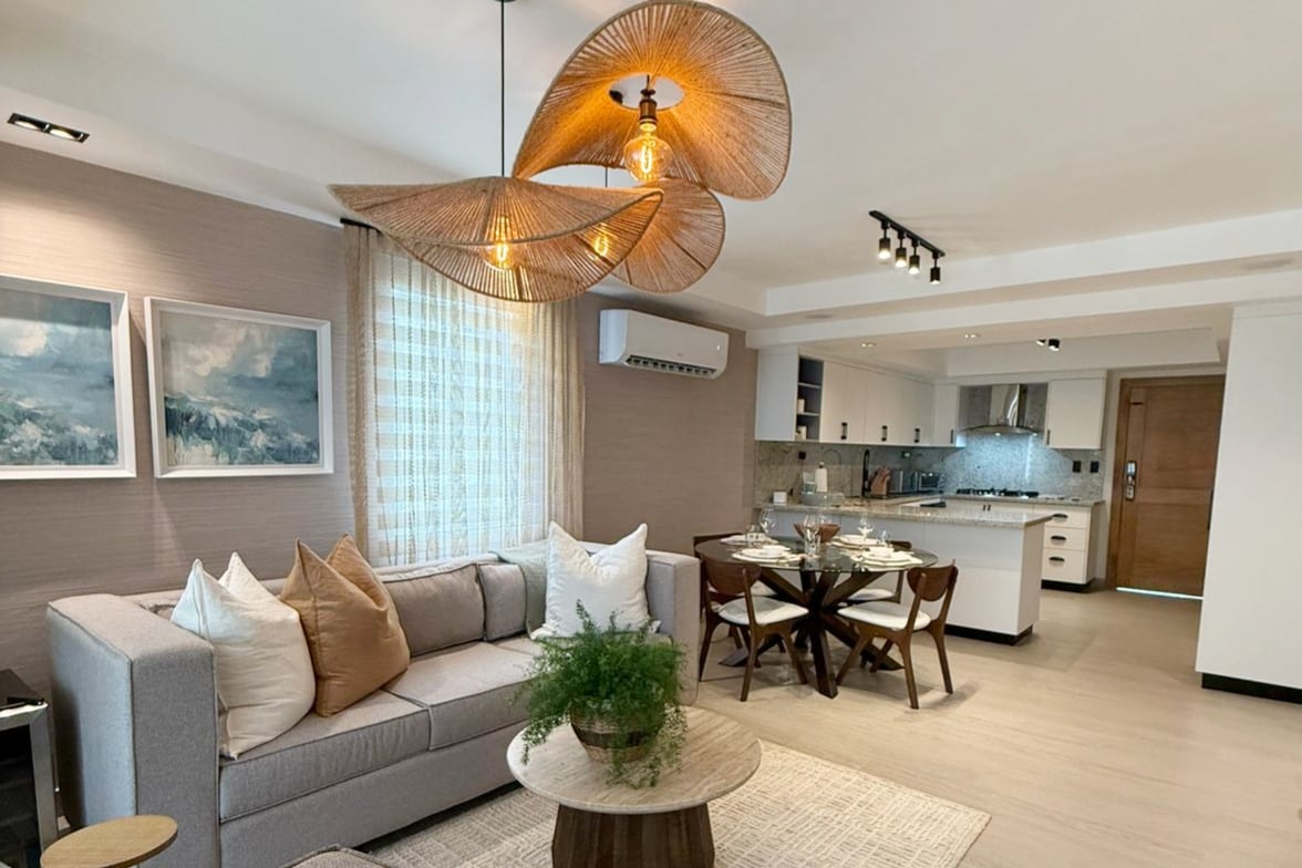 Brand-new apartment offering you exclusive access to a private rooftop paradise with panoramic views of the Puerto Plata hills from our Picuzzy. Dive into relaxation in the pristine pool, a hidden gem for our guests, and the sun-kissed Playa Dorada beach is 5 minutes away. Inside, you'll discover three spacious bedrooms, each equipped with refreshing air conditioning to ensure your comfort. The expansive living room is your cozy haven for memorable movie nights and quality time with loved ones.