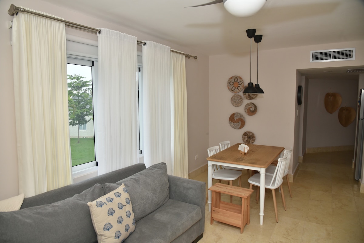 • First-floor apartment in the AQUA building, directly on El Pueblito Beach • Beach view from apartment; rooftop features mountain and ocean views • Includes 50 Mbps internet connection • Public parking located ~270 meters away • Close to bars, restaurants, grocery stores, casino, shopping center, and supermarket