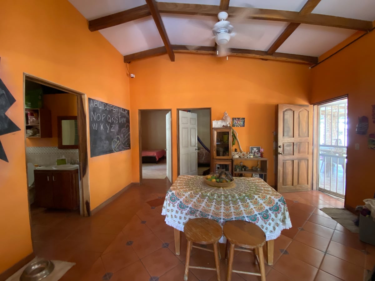 Charming country house in a private esidential area, ideal for couples, surfers, digital nomads, or long stays surrounded by nature. With access to two beaches, including a private beach, just 15 minutes from El Zonte and el Tunco and Puerto de La Libertad Beaches, famous for their surfing. Strategic location for visiting other tourist destinations in El Salvador and only 45 minutes from the capital, with public transportation nearby. Pets are not allowed.