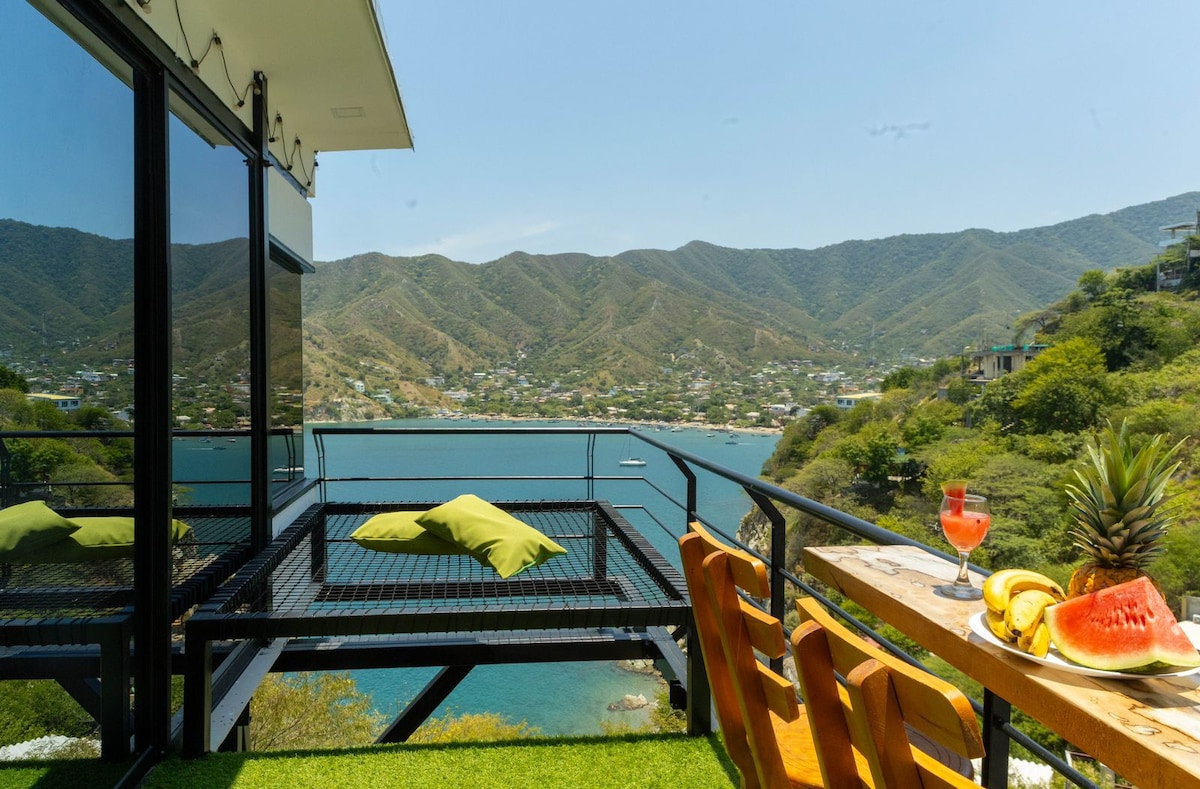 paradise Hike through lush jungles to stunning beaches, like Cabo San Juan, where you can swim, relax, and enjoy breathtaking views. with spectacular views Located on the picturesque road to the town of Taganga, located 1 km from Santa Marta, our exclusive private space is the perfect destination for couples looking for a unique experience by the sea; This intimate retreat offers an unrivaled panoramic view that encompasses both the sea, the mountains and the charming town of Taganga.