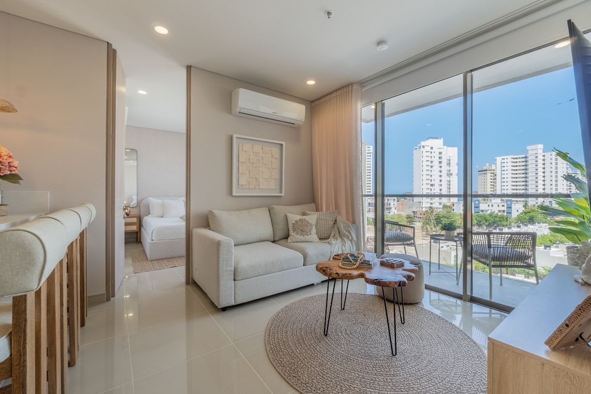 Charming apartment in El Rodadero with access to the beaches of Gaira and Rodadero just 5 minutes away. Enjoy amenities like air conditioning, coworking space, gym, 2 swimming pools in the building, and WiFi. Plus, it has visitor parking. Equipped with everything you need for an unforgettable vacation. Your perfect getaway awaits you! Additionally, receive an additional 10% discount on bookings at Palomino Sunrise hotel for when you want to go to Palomino.