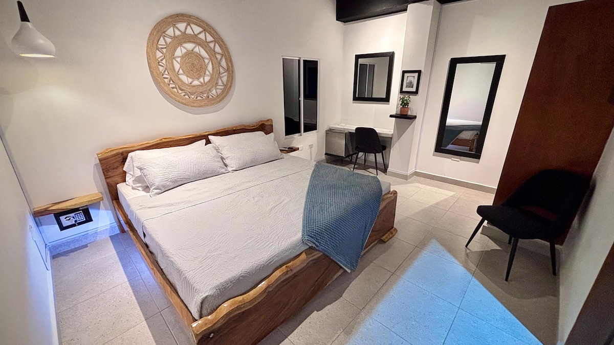 Disfruta de una experiencia única en nuestra habitación moderna y totalmente equipada, diseñado para ofrecerte comodidad, estilo y calidez en cada rincón. Ideal para parejas, grupos de amigos o viajeros que buscan un espacio práctico sin renunciar al encanto y la tranquilidad. La habitación combina diseño moderno con un toque hogareño, creando un ambiente perfecto para descansar, y disfrutar momentos inolvidables. A solo 300 mts del mar, transporte y turísticos del Rodadero