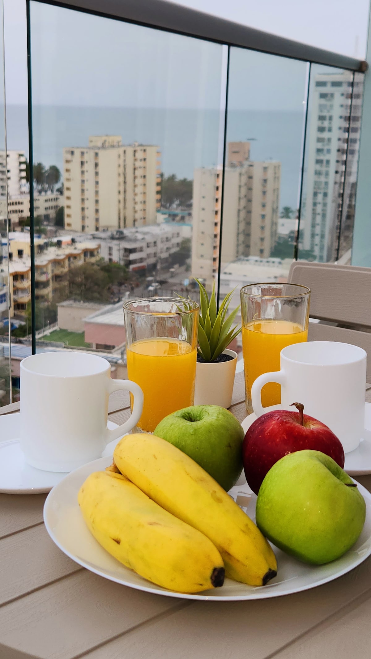 A *fully furnished modern suite* in Santa Marta just a short walk from Salguero Beach & close to El Rodadero, one of the city's most popular tourist spots. ✨ Highlights: Rooftop pool, Jacuzzis, Sauna, Turkish Bath, Game room, & Gym. MORE ⬇️. The building has free parking for visitors, subject to availability. The suite has a mountain view. Whether you're looking to unwind or explore, this suite is the perfect base for your time in Santa Marta.