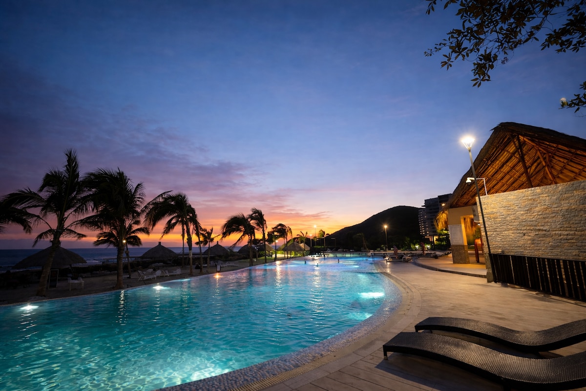 This loft offers a comfortable and relaxing stay with beautiful ocean views and a prime location in Santa Marta, just minutes from the Historic Center. It features a fully equipped kitchen, Smart TV, reliable WiFi, and a private balcony with an outdoor dining area. The building includes a pool, jacuzzi, gym, sauna, steam room and 24/7 security. Surrounded by restaurants, cafés, and nearby coworking spaces, it’s ideal for short or extended stays with easy access to the city’s main attractions.