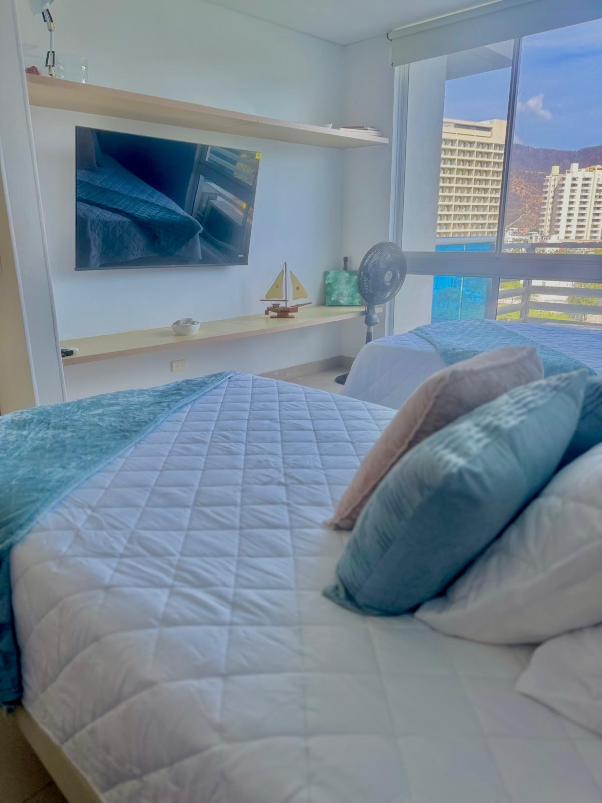 舒适公寓+无线网络+游泳池+空调+电视+景观@圣玛尔塔
