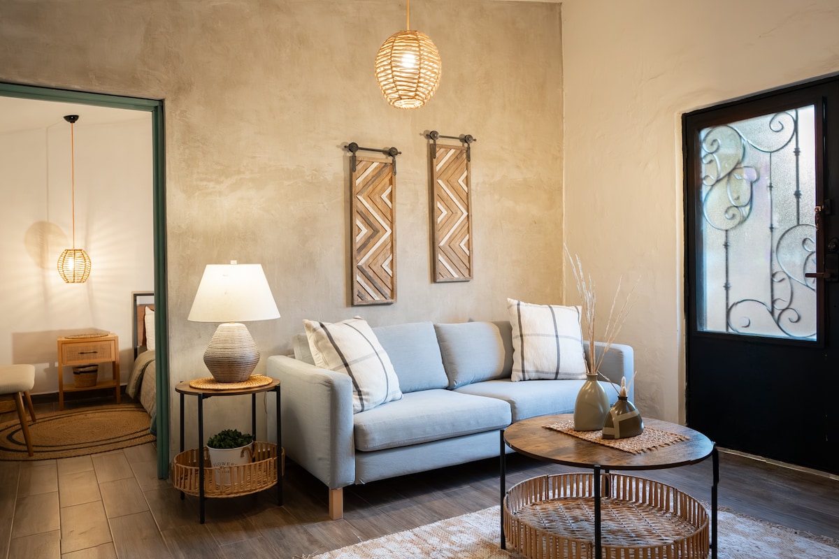 Privacidad y EXCLUSIVIDAD única, solo dos lofts en la misma propiedad con garage independiente!!! Amplios espacios jardinados, C/U con terraza-jardín privada. La mejor ubicación en La Paz, a pasos de los mejores restaurantes, cafés y malecón. En un área tranquila y silenciosa. Wifi de ALTA VELOCIDAD, cocina completamente equipada. La arquitectura conecta el interior y la terraza exterior privada..KIT DE PLAYA equipado con toldos resistentes al viento, no más sombrillas volando por ahí!