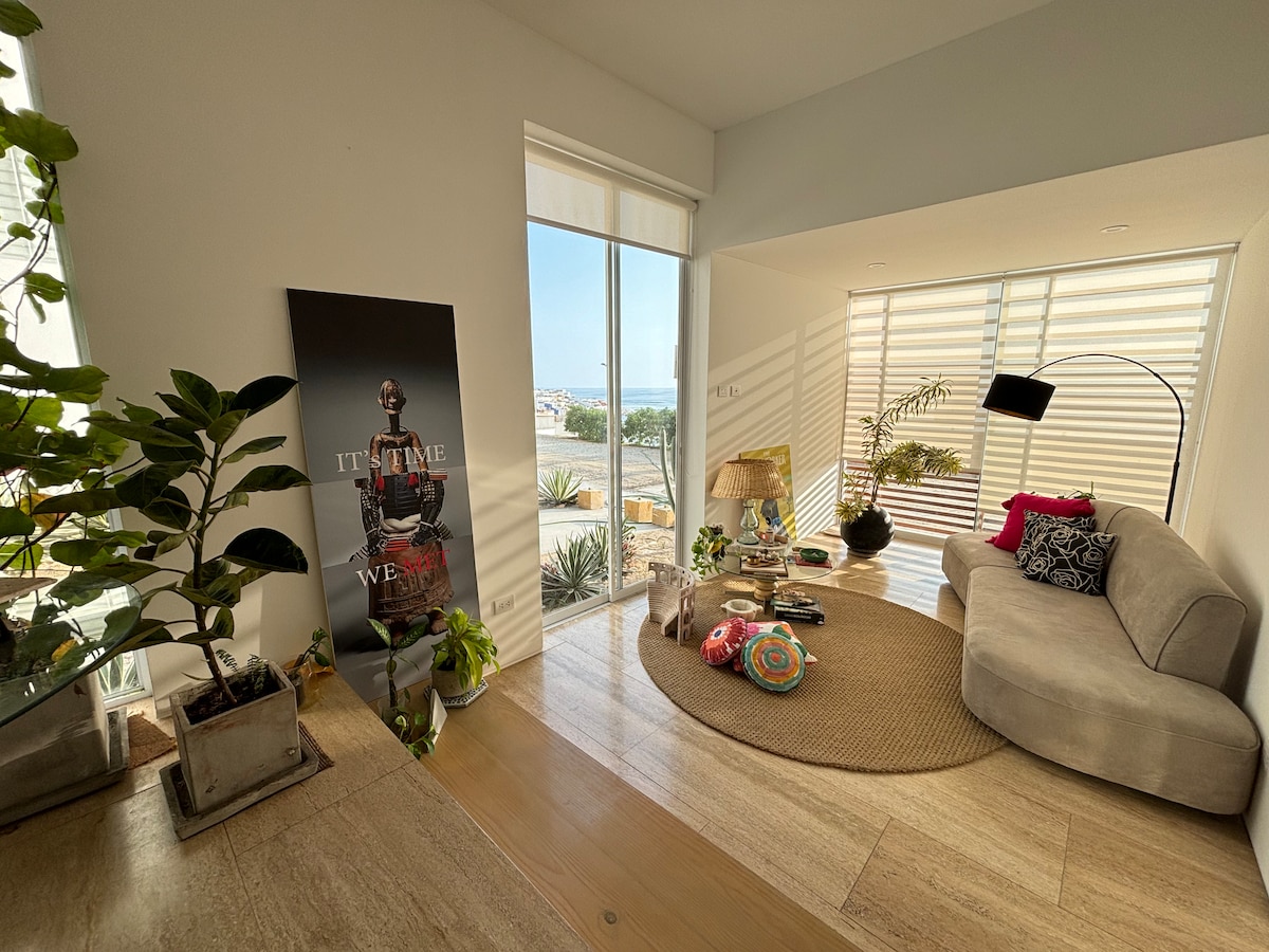 ¡Despierta con el sonido de las olas! Una estadía relajante en este acogedor monoambiente frente al mar, ubicado en el primer piso con acceso directo a la playa. Equipado con una cama queen y un sofá cama, cuenta con cocina completamente equipada, baño privado, Wi-Fi y un proyector para que puedas ver tus series favoritas en Netflix. El espacio es perfecto para descansar, correr buenas olas, trabajar con vista al mar o simplemente desconectarte. -Cama queen y sofá cama de plaza y media.