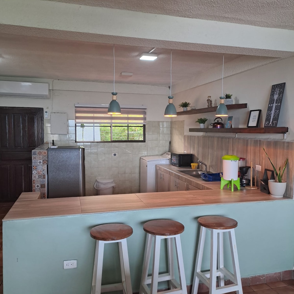 Nestled in the heart of El Zonte, this spacious one-bedroom apartment feels like a cozy treehouse. Just steps from the beach and close to restaurants, it’s the perfect blend of comfort and charm. Please note: the apartment does not have AC, so it can be hot during the day, but it cools down at night with the fans and ocean breeze. Drift off to sleep to the soothing sound of the waves!