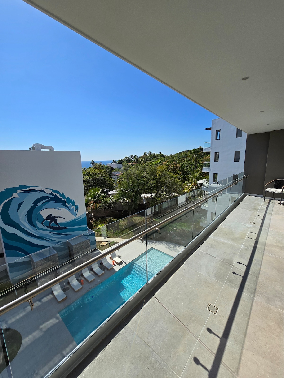Comienza tu dia tomando una taza de café desde el balcón con vistas al océano, y luego dirígete a surfear olas de clase mundial a tan solo unos pasos. Refrescate en la piscina y termina tu dia viendo el atardecer preparando una cena en la cocina totalmente equipada o disfrutando de una pelicula. Dos acogedoras habitaciones y amplia sala con sofa cama, A/C, wifi rápido, lavadora/secadora, locker para tabla de surf. Ideal para parejas, surfistas, familias pequeñas y nómadas digitales.