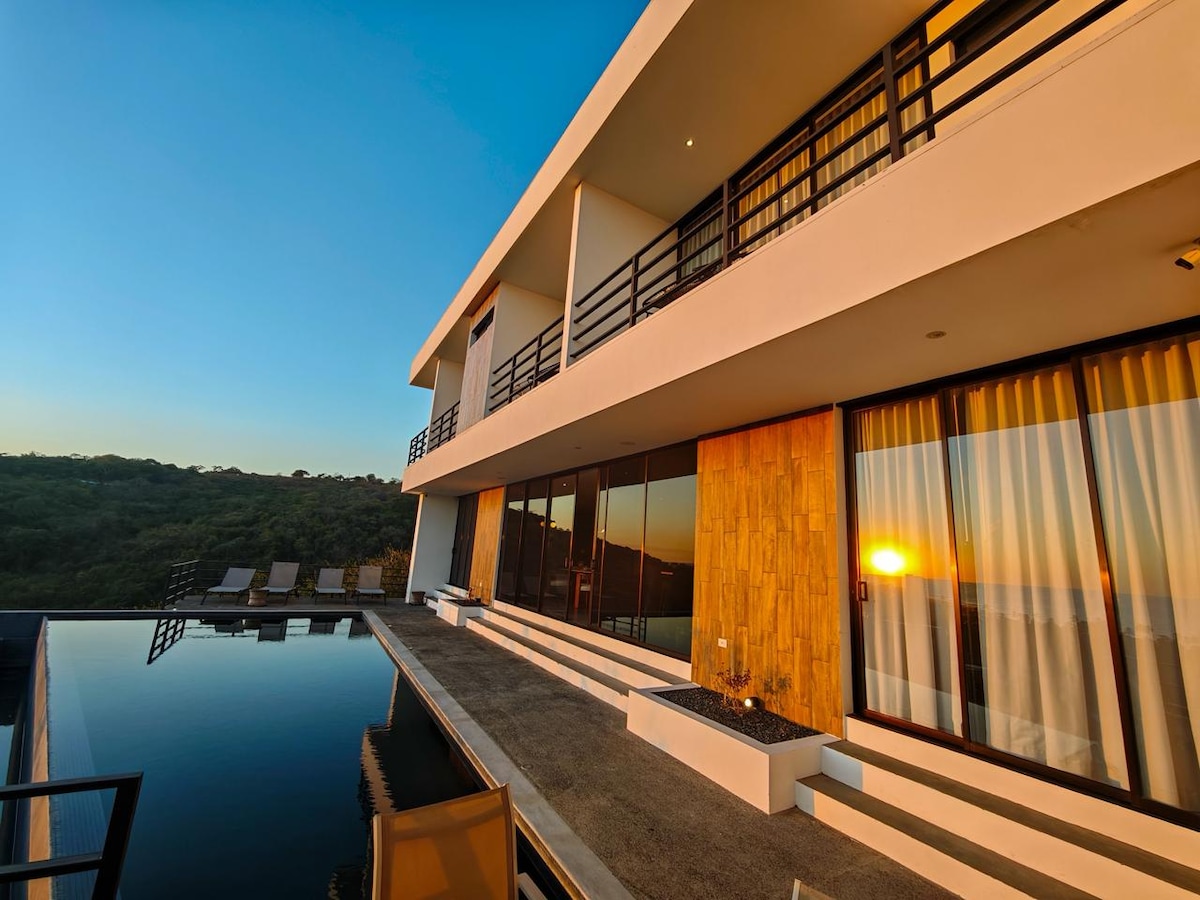Las Mañanitas is a newly constructed beach villa overlooking the sunrises and the coastal line of the Pacific Ocean. The villa's three bedrooms accommodate up to 8 people. Each bedroom has its own full bathroom and balcony, with an amazing view to the ocean. Living room, dining room and kitchenette all within the same living area, with frontal view to amazing infinity pool. The villa is located inside a gated community with security 24/7. It has direct access to the private beach.