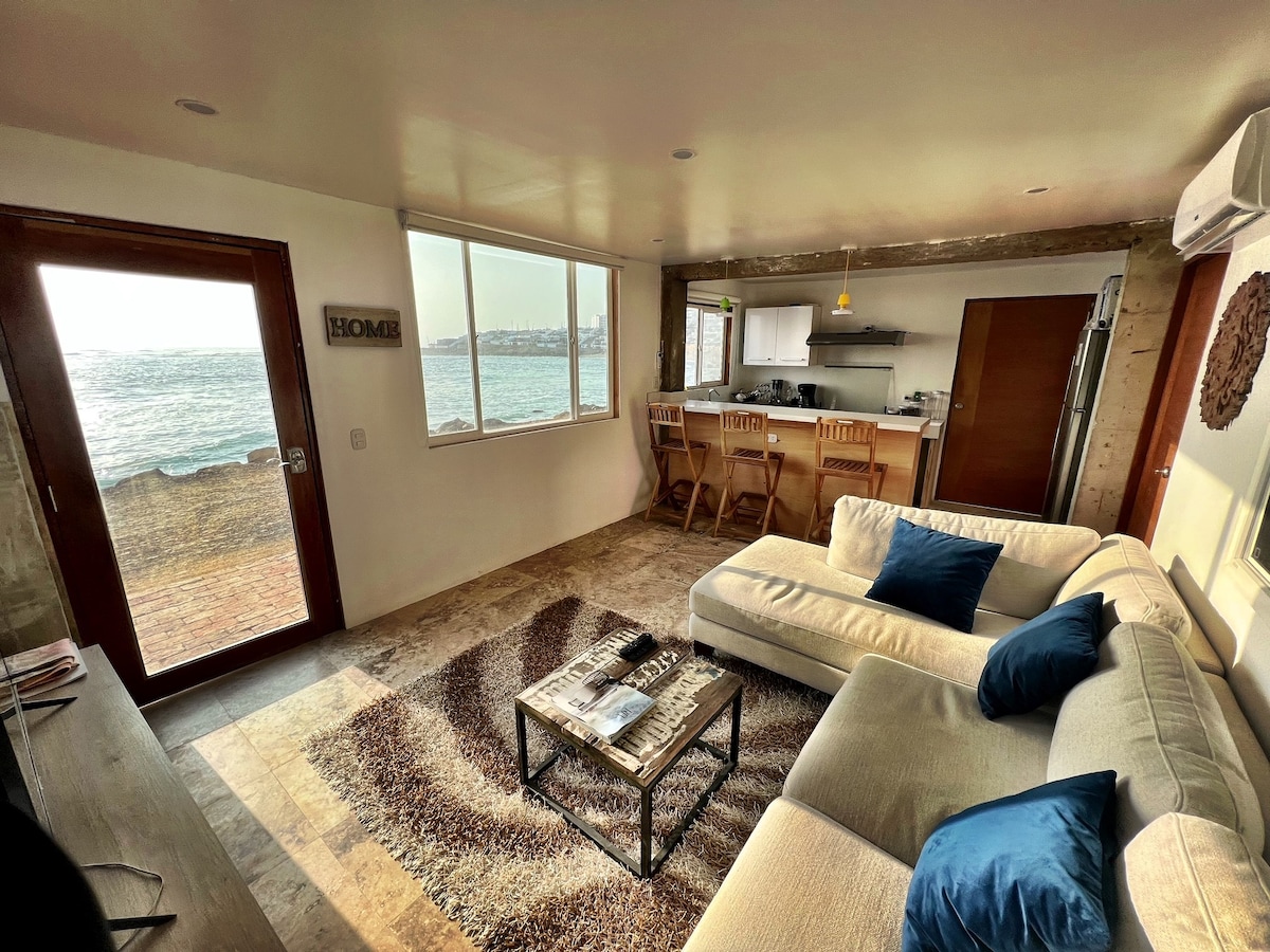 Miniapartamento tipo loft , con vista al mar. Perfecto para pasar unos dias inolvidables en pareja. Cuenta con cama king, mueble cama, tv smart, wifi, cocina a gas, menaje, sala, mini comedor, baño con terma agua caliente, lavadora. Además, podrás aprovechar unas noches fabulosas escuchando el sonido del mar y disfrutando de una hermosa vista. La playa es pequeña, casi privada. La piscina es un area común de la casa, habilitada de 10 am a 6pm. NO BRINDO TOALLAS NI ARTICULOS DE ASEO PERSONAL.