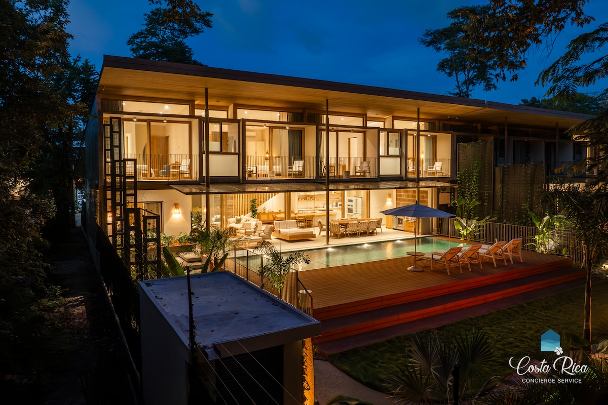 Welcome to Casa Prana: Your Luxurious Beachfront Escape Experience the ultimate escape at Casa Prana, where luxury and comfort meet adventure. This stunning 5-bedroom, 5.5-bathroom home sets itself apart with exquisite decor and top-quality furnishings, providing a serene environment for relaxation and enjoyment. Just a half-minute walk along a beautiful trail leads you to Playa Grande’s world-class surf, making it the perfect destination for surf enthusiasts and families alike.