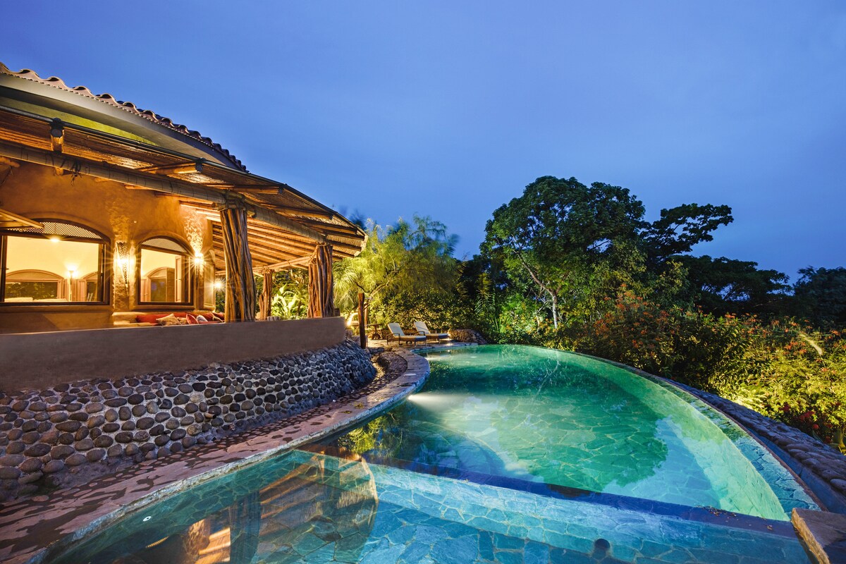 Villa Shambala is precisely what its name suggests...a mythical place. A place where time stands still. A sacred space. Included: - High Speed WIFI - AC in all 4 Bedrooms - 5 Full Bathrooms and 2 extra large baths - Fully Equipped Kitchen - Hotel Quality Beds and Linens - Infinity pool with Volleyball Net - Professional Concierge Service - Ping pong table - Pool towels - Parking spaces - Lush Tropical Gardens with exotic Fruits -2 Hammocks on Terrace -1 Hammock at sunset lookout point - BBQ