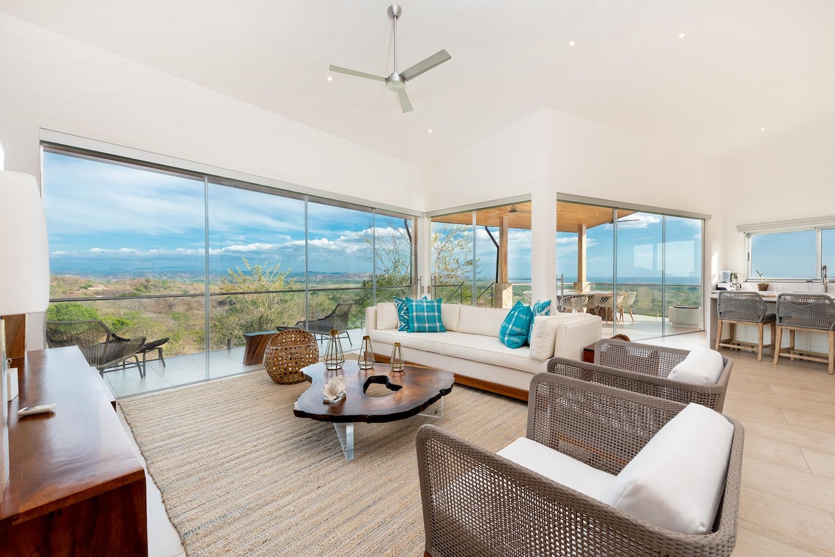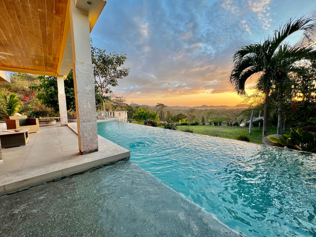 Nouvellement rénovée. Séjournez dans une superbe villa avec piscine à débordement privée, située dans une communauté sécurisée, proche des plus belles plages du Costa Rica. Entièrement rénovée en 2025, elle offre confort moderne et vue imprenable. • 2 chambres climatisées avec salles de bain privées • Espace ouvert avec cuisine équipée et salon cosy • Salle à manger extérieure pour admirer des couchers de soleil spectaculaires • Wi-Fi, alarme et parking clôturé