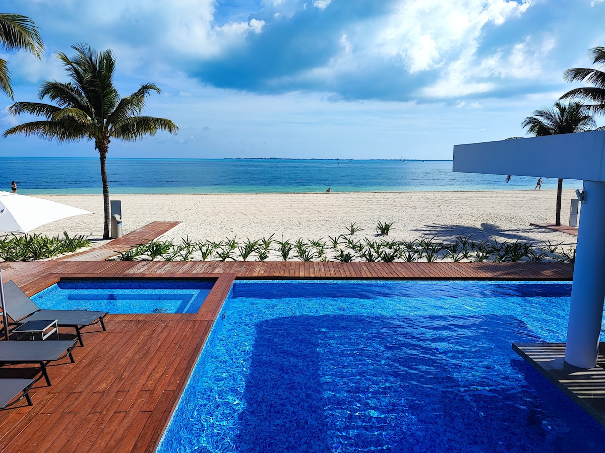 坎昆最佳海滩的海景1卧室公寓。