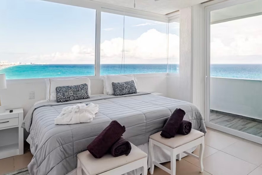 My place is directly on the beach and recently remodeled as new. Views are spectacular and the beach is beautiful. Facilities like pools, jacuzzi, lounge chairs, shades, gym, tennis court are available for you free of charge Wifi, Smart tv, AC. You have an all inclusive feature that is optional daily for food and drinks as we share facilities with Oleo Cancun resort (today $95 usd p/p per day) There are also 3 restaurants across the street and a convenience store