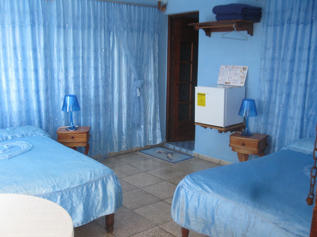 Manolito y la niña alquilan dos habitaciones independientes, con baño privado cada una y climatizadas. Cada habitación tiene una cama doble y una simple, de modo que se pueden alojar hasta 6 personas. La casa está ubicada en Caletón a tan solo 20 metros de la playa.