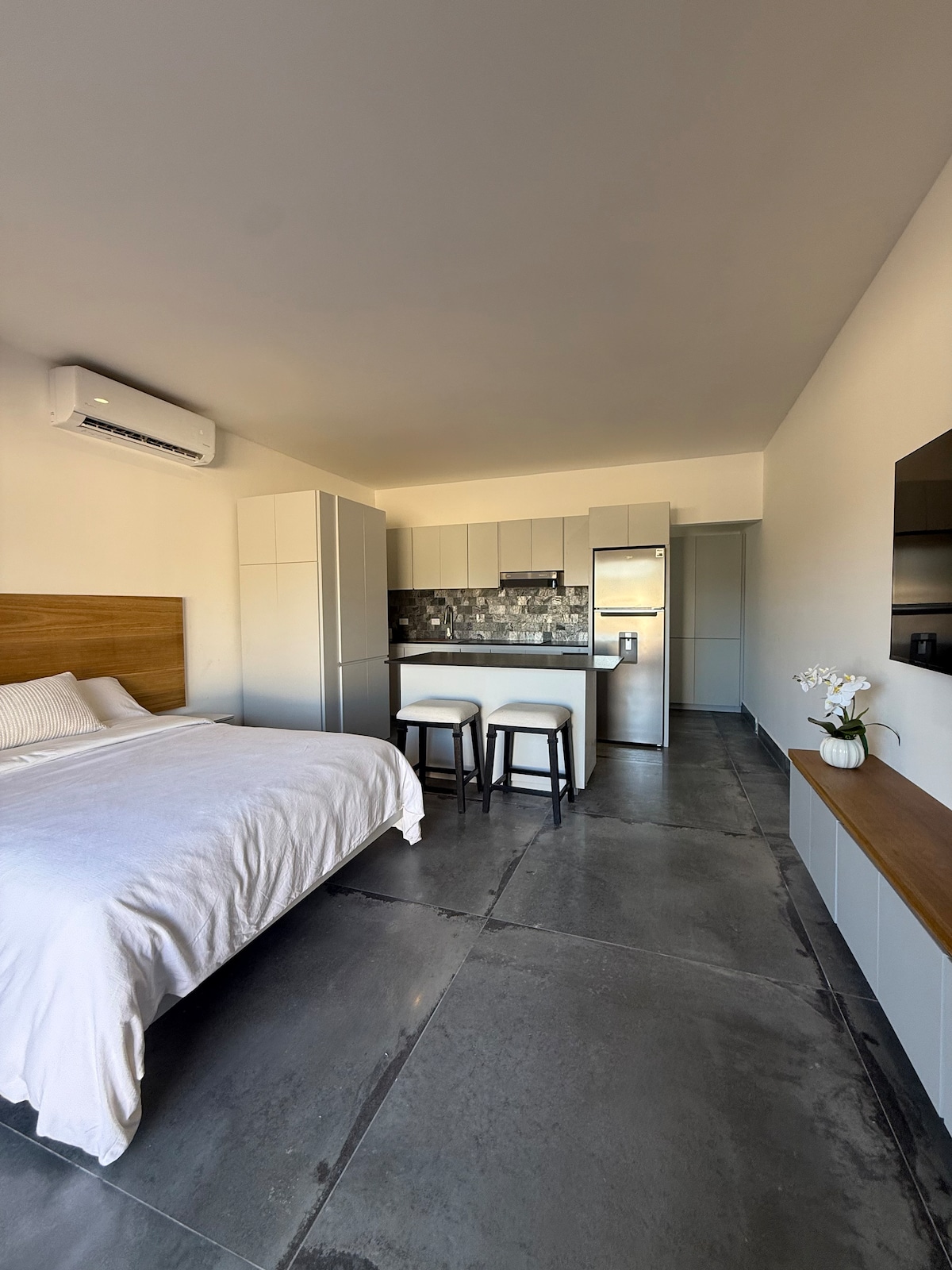 Cozy ground-floor apartment located in the heart of Playa Grande, right on the main road with easy access. Just a short walk to the area’s best restaurants and only 4 minutes walking to the beach. The property offers: - King-size bed. - Fully equipped kitchen. - Smart TV. - Hot water in the shower. - A/C and ceiling fan in the bedroom and living room. - High-speed internet. - Swimming pool (shared). Feel free to message me if you have any questions!