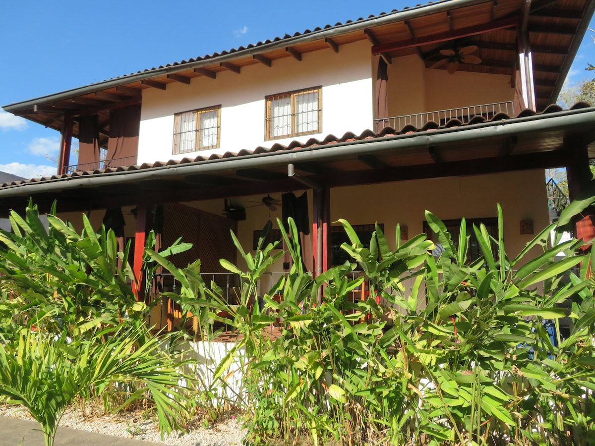 Apartamento equipado con todo lo que necesitas para corto o largo plazo de estadía. Internet rápido, ubicado en una rotonda residencial tranquila donde casi no circulan autos. A 300 metros de la playa, restaurantes, banco, supermercado, 100 metros del gym super céntrico. Puedes salir en la noche y volver caminando. Es normal ver en el patio, iguanas, monos aulladores, zorritos, Aves, ardillas etc. Los huespedes tiene descuentos en el surf shop Club 33 y además te ayudare a recomendarte otras act