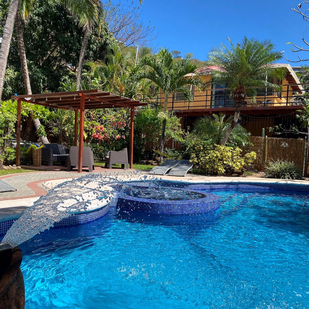 Welcome to Jardin Escondido (Hidden Garden) Cozy 2BR Bungalow Near Playa Grande – Pool, A/C, Full Kitchen & Shared Amenities Unwind in this comfortable 2-bedroom bungalow just a 10-minute walk (or 2-minute drive) from Playa Grande beach. One of six bungalows on a shared tropical property, this is a perfect spot for couples, small families, or friends looking for a peaceful stay with great amenities. Jardin Escondido #4