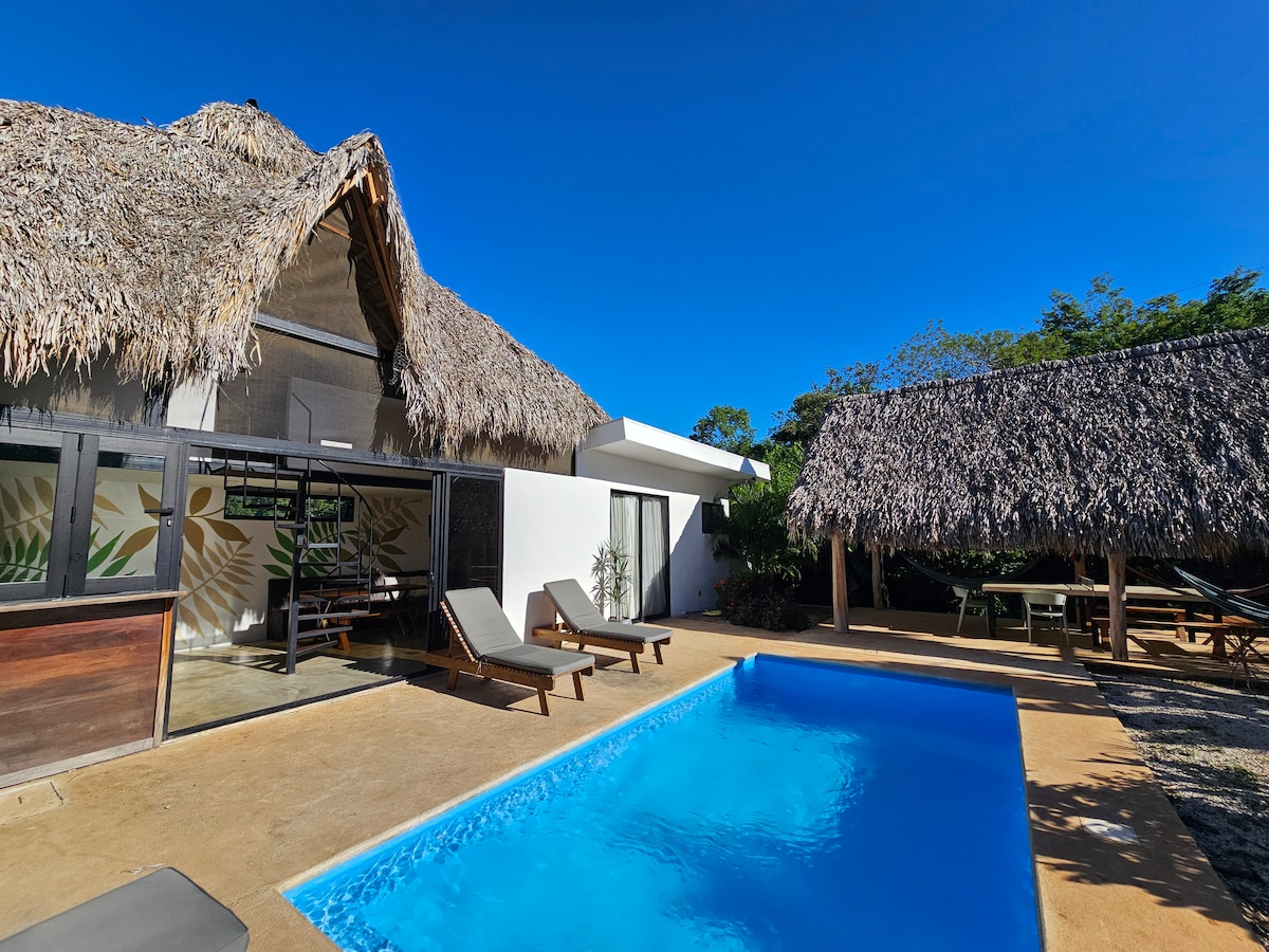 Bienvenue à la Villa Solana ☀️, une propriété idéalement située à seulement 300 mètre de la Plage (4 minutes à pied). PISCINE PRIVÉE Profitez de cette plage magnifique, reconnue comme l'un des meilleurs spots de surf. C'est aussi l'endroit parfait pour de longues promenades, admirer des couchers de soleil spectaculaires et savourer des happy hours inoubliables. La Villa se trouve à une heure de route de l'aéroport international de Libéria, avec une route asphaltée pour un trajet confortable.