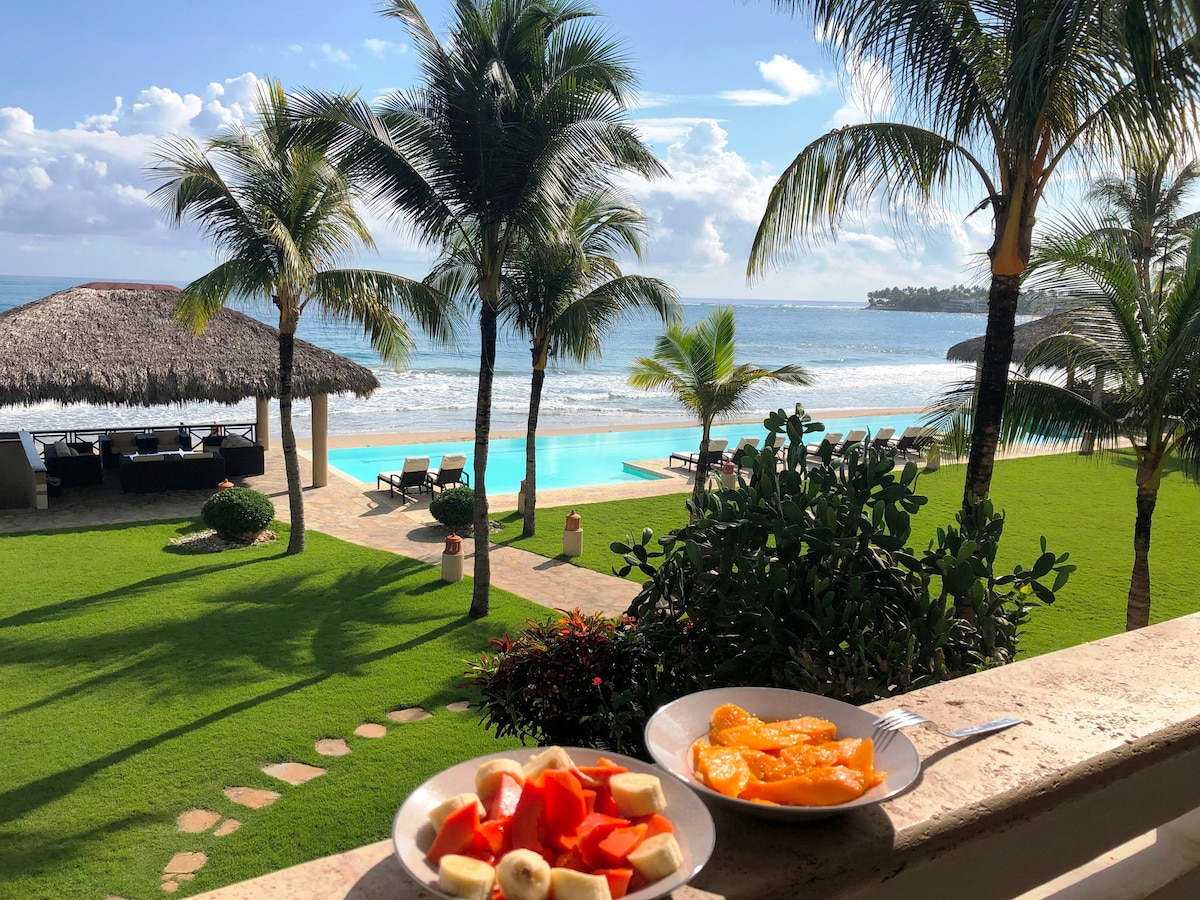 Escape to this NEW Luxurious and Modern Beachfront Condo on Playa Dorada Puerto Plata, Dominican Republic. All needed to enjoy a pleasant, peaceful and safe stay; with direct access to the beach, the double terrace that leads you to the swimming pool, a gazebo and gym; accessible upscale golf campus, restaurants inside the complex, close to shopping center, the international airport, and many attractions like water park, cable cars, historic center, nightclubs and more.
