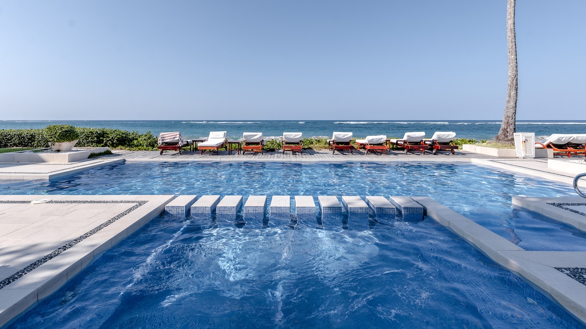 Beautiful luxury, gut-renovated, 2BR beachfront condo with a huge balcony for dining, overlooking the garden, pool and Kite Beach! Marble bathrooms, wine cooler, full kitchen, brand new appliances. Exact location: Cabareef. Take a long, relaxed breath and sink into the best location in Cabarete. Quiet, safe, and centrally located, but a 2-minute walk from great bars and restaurants. My great-condition 2019 Mazda SUV available as an extra for less than typical prices.
