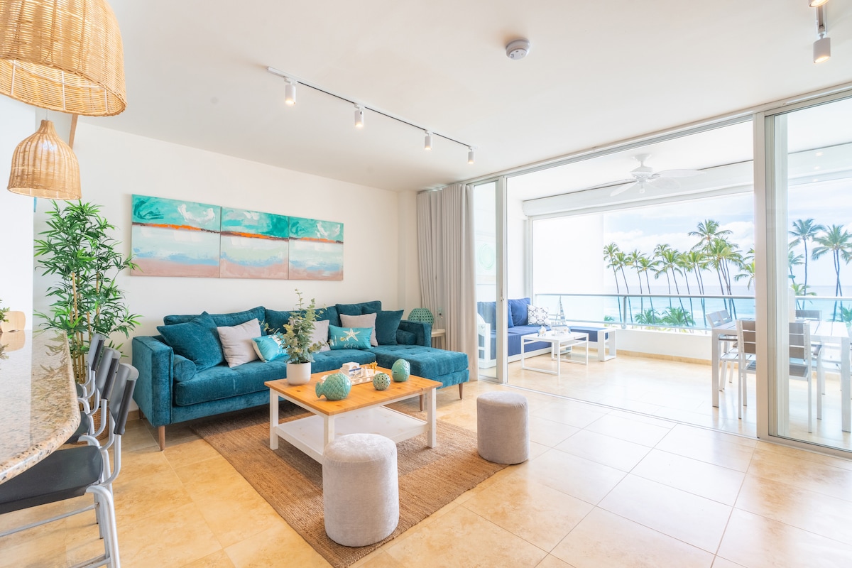 Modern oceanfront apartment in Juan Dolio with direct beach access, pool, fast wifi, air conditioning, 24 hour security, and private parking. Bright space with balcony and ocean view, ideal for vacations, remote work, and long stays. Close to restaurants, cafés, and supermarkets.