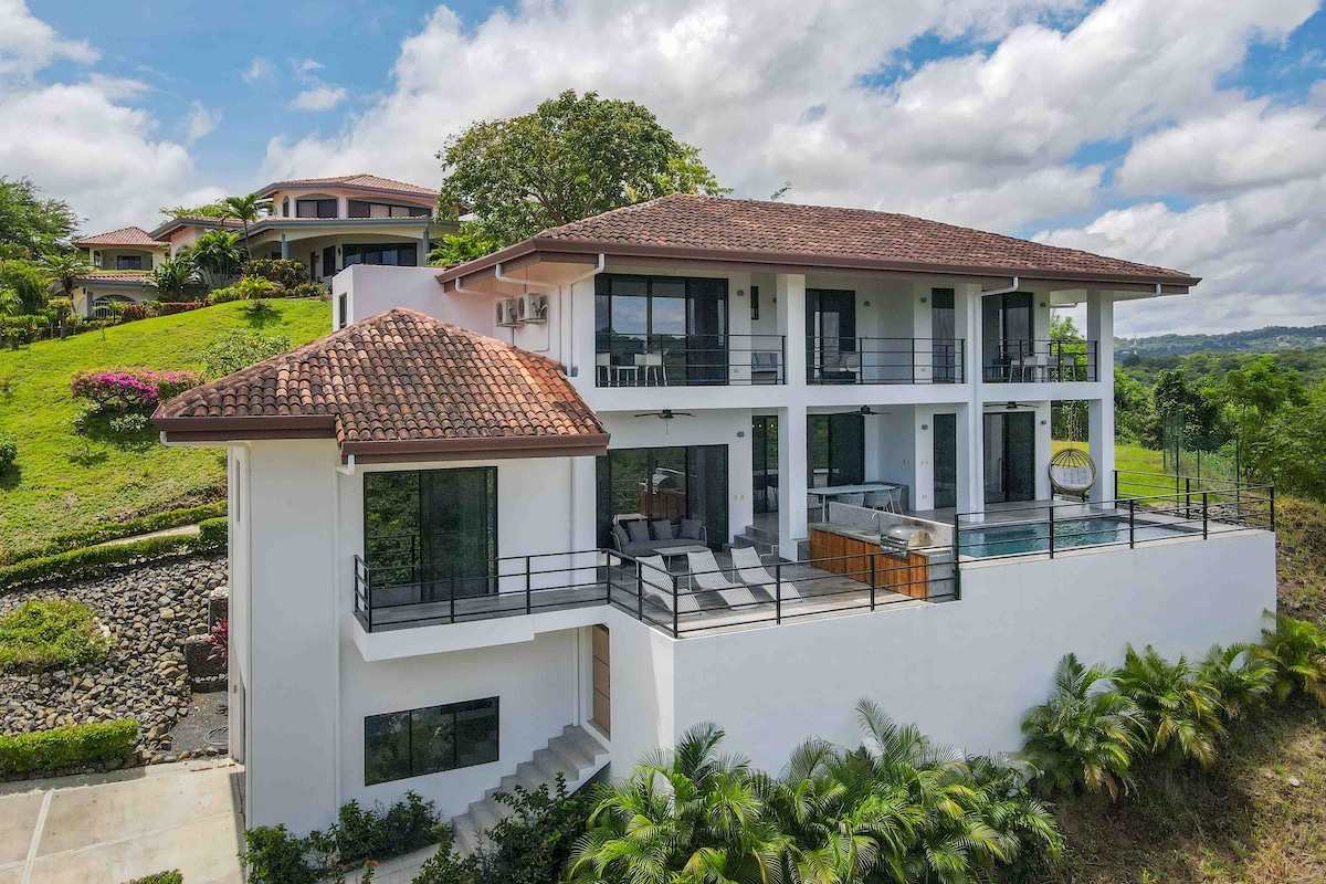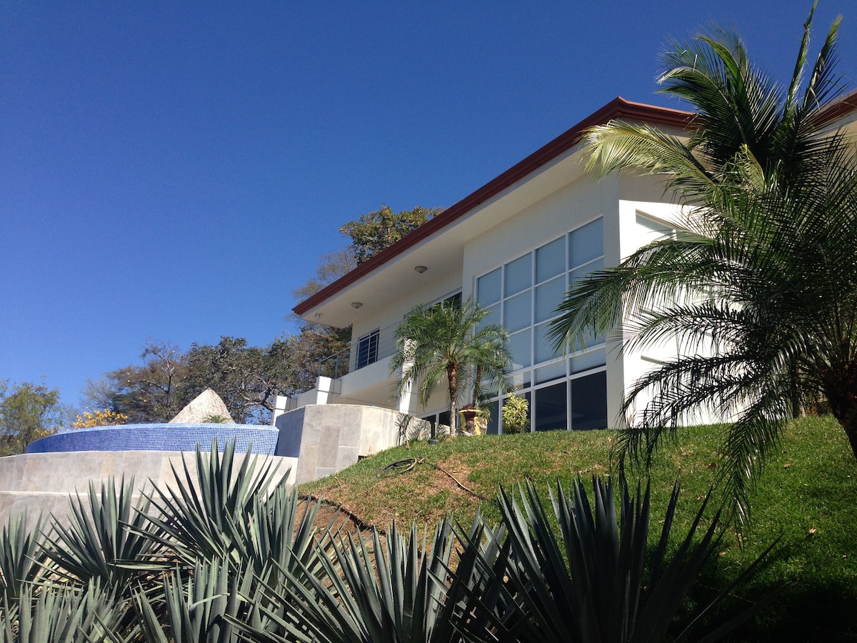 One of the best ocean and mountain views in Playas del Coco! We welcome everyone! Perfect for couples, families and remote workers. Fully equipped house, located at the top of a mountain inside a gated community, 10 minute walk to the beach. Grocery stores, restaurants and stores nearby. Short drive from Liberia Airport (20 min). Enjoy a concert of birds and monkeys every dusk and dawn, spectacular sunsets views of Playas del Coco. Close to nature, but not far away from commodities!