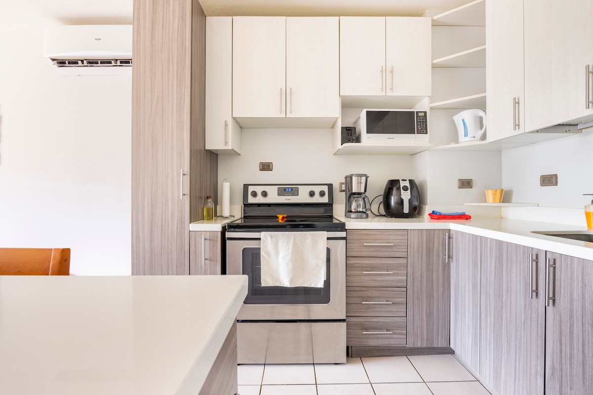 Traveling with a larger group? We own another condo in this same complex airbnb.com/h/beachtown-haven-playas-del-coco * sun-filled centrally located 2 bdr 2 bath * 625 sq ft condo (58 m2) * 2 min walk to the main street * 8 min walk to the beach * new super fast hi-speed internet 277 mbps * refreshing double diamond pool * private rock terrace with your own furniture * 3 new super cold AC units * new quartz countertops * new floor tiles and solid wood doors * 1 Queen bed + 1 Double bed