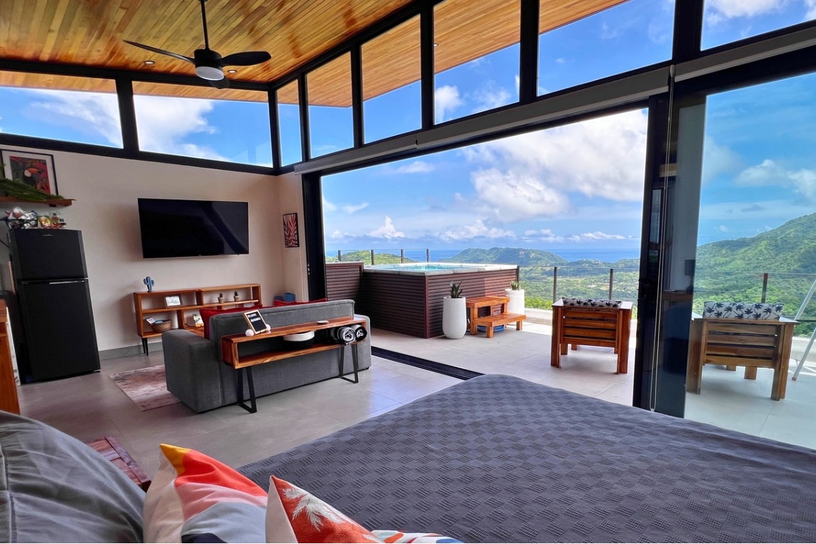 The Tree House is a 3 story ocean view villa featuring an 800 sq. ft. King Studio apartment on the 2nd Floor, private balcony & sun deck, sweeping views of the Pacific Ocean & beaches, private jacuzzi, full kitchen, king bed, desktop workspace, AC, indoor & outdoor seating, spacious shower & ensuite bathroom. Guests must have transportation. Can’t find the dates available you’re looking for? Check out our other King Studios with the same great amenities. https://www.airbnb.com/rooms/41883897