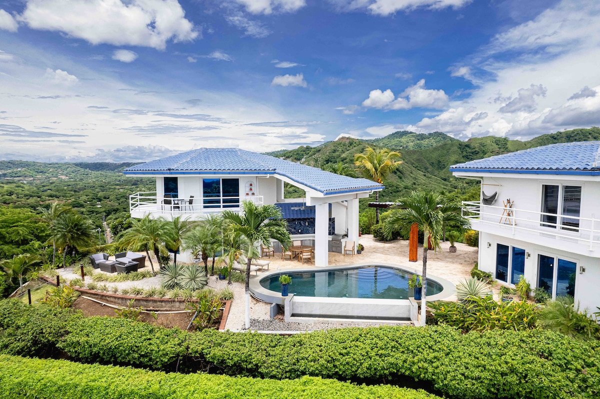 LUXURY VILLAS PURA VISTA WITH A GORGEOUS OCEAN VIEW!! Welcome to elegant Villa Pura Vista! This wonderful tropical villa is located in the prestigious la Marcela gate community, ( 24 hrs guard ) A spectacular VIEW. home set high up on a hill overlooking several pristine beaches, Catalina Islands, night lights and the Flamingo marina, Potrero Beach bay. Secluded, yet within minutes of beautiful beaches Like Playa Danta, Playa Potrero, Playa Penca Playa Flamingo, Playa Conchal,