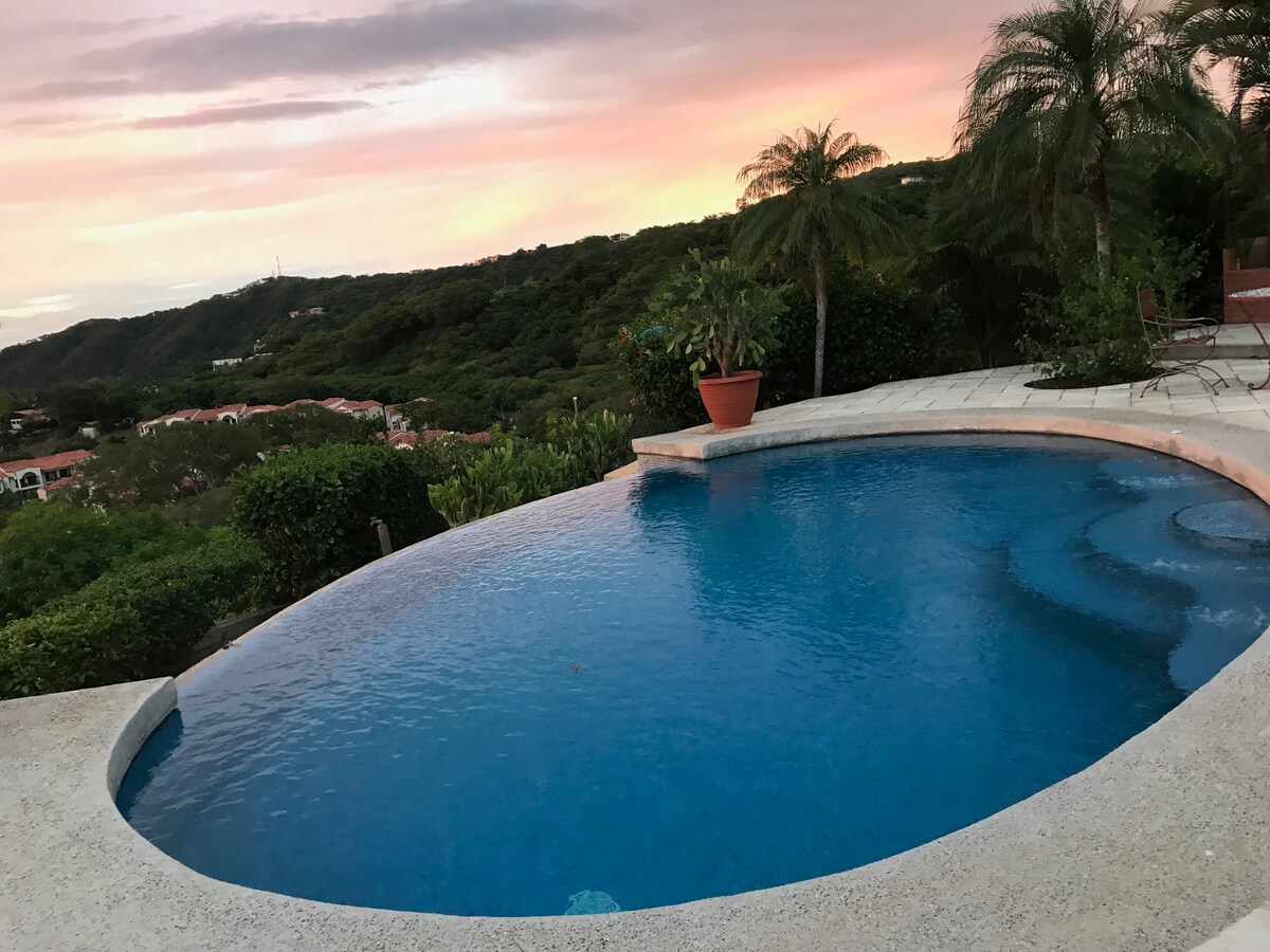 Beautiful contemporary home with breathtaking ocean and mountain views, a private infinity pool, high-speed 100 Mbps internet, and hot water. Spacious gated property with a perimeter wall and electric gate for privacy and security. Just a short 450-meter walk to the beach. Perfect for relaxing stays in a quiet neighborhood. Only 5 minutes by car or 20 minutes walking to downtown Playas del Coco. Liberia International Airport is 24 km away, with direct flights from the US and Canada.