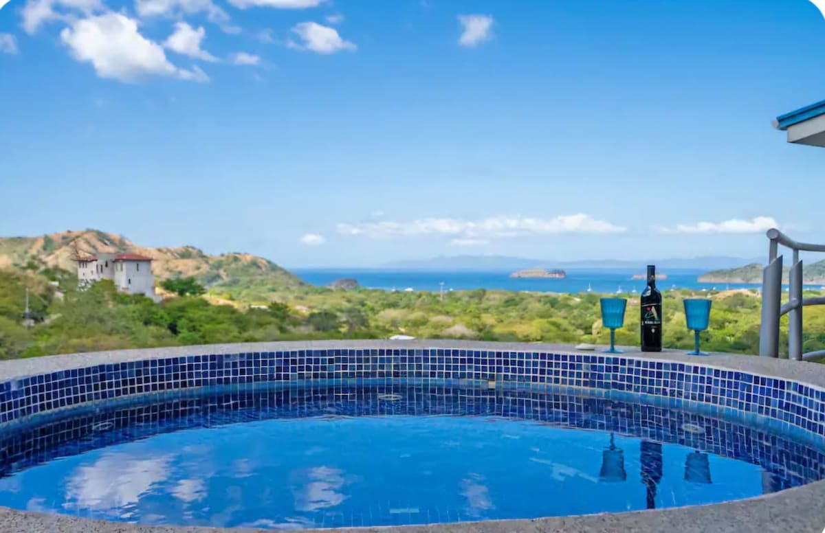 LUXURY VILLAS PURA VISTA WITH A GORGEOUS OCEAN VIEW!! Welcome to elegant Villa Pura Vista! This wonderful tropical villa is located in the prestigious la Marcela gate community, ( 24 hrs guard ) A spectacular VIEW. home set high up on a hill overlooking several pristine beaches, Catalina Islands, night lights and the Flamingo marina, Potrero Beach bay. Secluded, yet within minutes of beautiful beaches Like Playa Danta, Playa Potrero, Playa Penca Playa Flamingo, Playa Conchal,